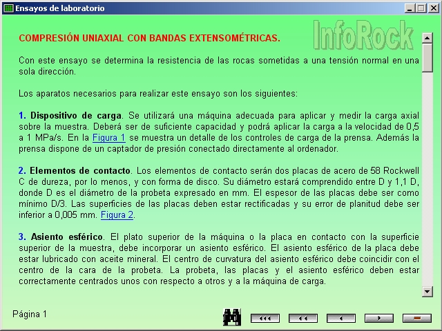 Con este ensayo se determina la resistencia de las rocas sometidas a una tensión normal en una sola dirección. Contenido COMPRESIÓN UNIAXIAL CON BANDAS EXTENSOMÉTRICAS Preparación y conservación de las muestras para ensayo y de las probetas Procedimiento operatorio Obtención y expresión de los resultados