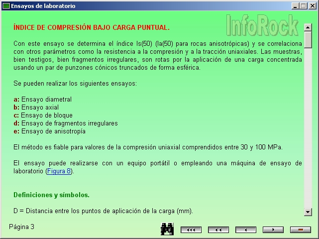 Con este ensayo se determina el índice Is(50) y se correlaciona con otros parámetros como la resistencia a la compresión y a la tracción uniaxiales. Contenido ÍNDICE DE COMPRESIÓN BAJO CARGA PUNTUAL - Definiciones y símbolos - Método de ensayo - Selección y preparación de muestras - Procedimiento operatorio - Cálculos