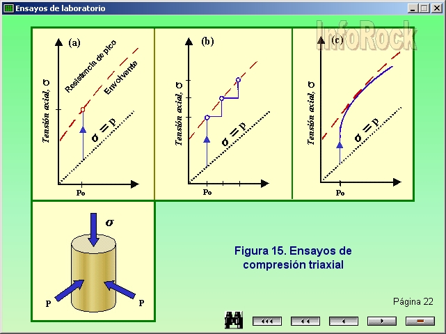 El objeto de estos ensayos es medir la resistencia de probetas cilíndricas de roca en función de la presión de confinamiento. Contenido RESISTENCIA A COMPRESIÓN TRIAXIAL - Campo de aplicación - Definición - Símbolos y abreviaturas - Método de ensayo